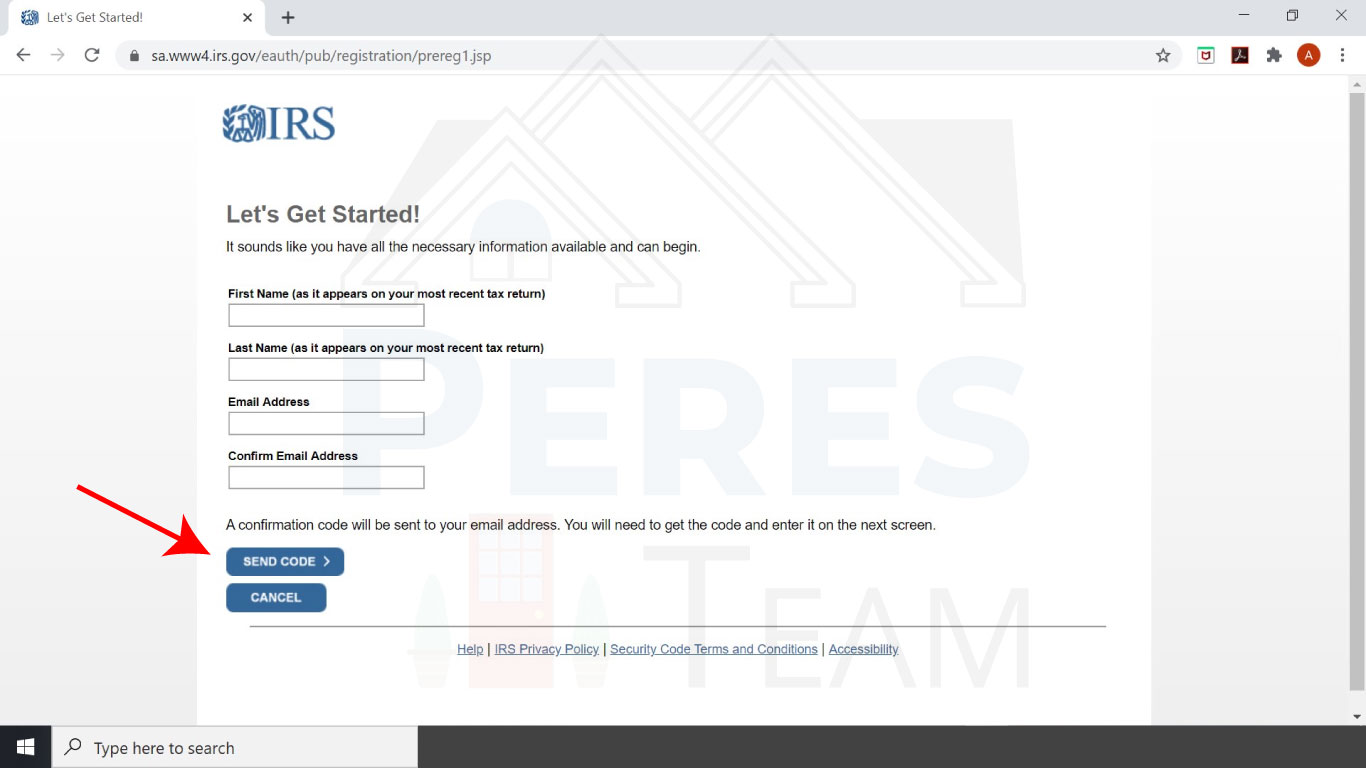 Enter your name and email address. Then click Send Code