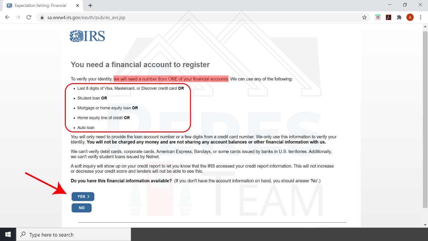Have all the information ready then click Yes